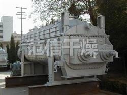 空心轴上密集排列着楔型中空浆叶,热介质经空心轴流经浆叶。单位有效容积内传热面积很大,热介质温度从-40℃到320℃,可以是水蒸汽,也可以是液体型:如热水、导热油等。间接传导加热,没有携带空气带走热量,热量均用来加热物料。热量损失仅为通过器体保温层向环境的散热。楔型浆叶传热面具有自清洁功能。物料颗粒与楔型面的相对运动产生洗刷作用,能够洗刷掉楔型面上附着物料,使运转中一直保持着清洁的传热面。浆叶干燥机的壳体为Ω型,壳体内一般安排二到四根空心搅拌轴。壳体有密封端盖与上盖,防止物料粉尘外泄而充分发挥作用。